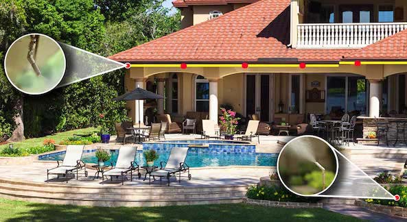 Now, starting at $199/month for 24 months, you can have the protection of twice daily automated services. Don’t worry, that “starting at” part doesn’t mean our basic system will cover a postage stamp home & yard. Our basic system includes a 300psi pump that easily pumps the mist through 80 nozzles and 1,200 linear feet of tubing. That’s enough to cover most standard sized yards.